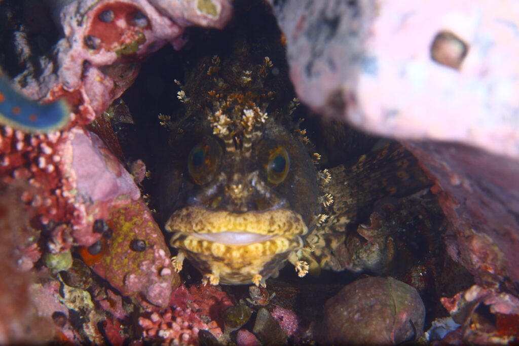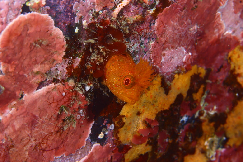 海は海藻の森やダンゴウオを楽しめる、まだあまり知られていない地のダイビングを楽しみます。