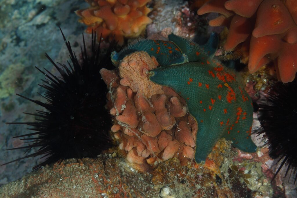 弱ったホヤはウニやヒトデに襲われてしまいます〜(´・_・`)