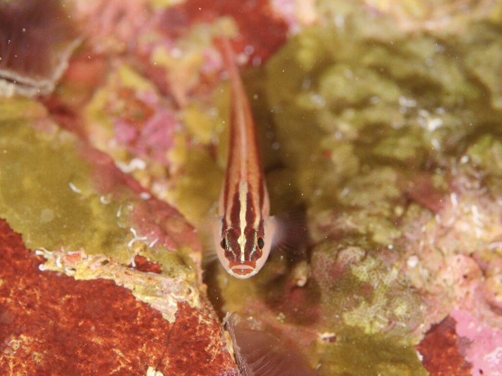 正面顔がかわいいですね〜!ここより南でも見れるお魚ですが、背景がカラフルでいい感じです!
