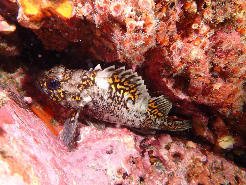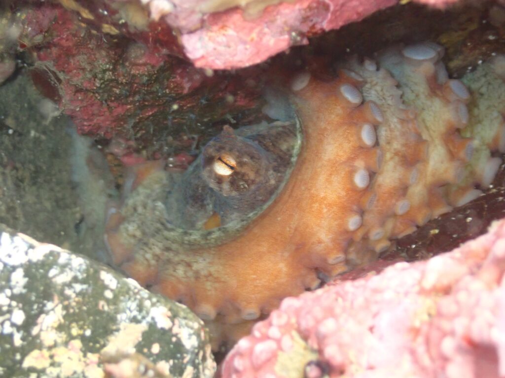 穴の中のマダコも、ライトをしっかり当てると綺麗に色がわかりますね〜!