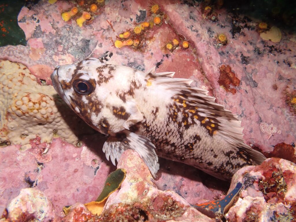 隙間によくいるムラソイです。白色が入った魚ってあんまり見ないですよね〜