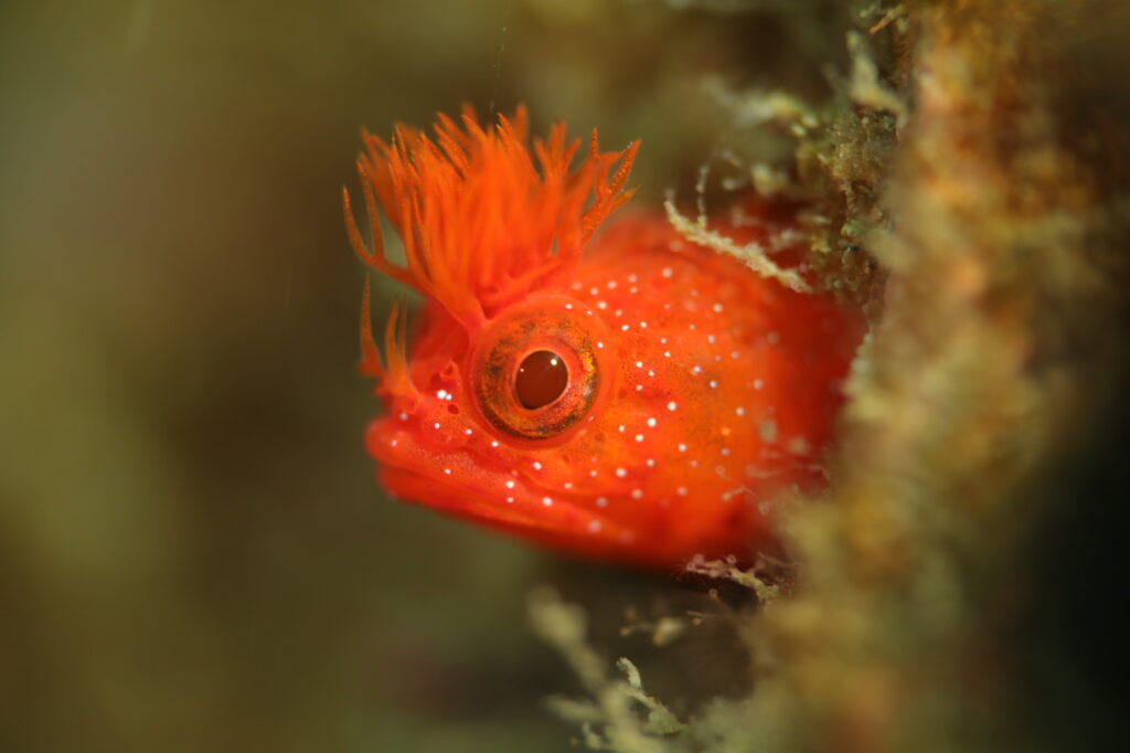 海は海藻の森やダンゴウオを楽しめる、まだあまり知られていない地のダイビングを楽しみます。