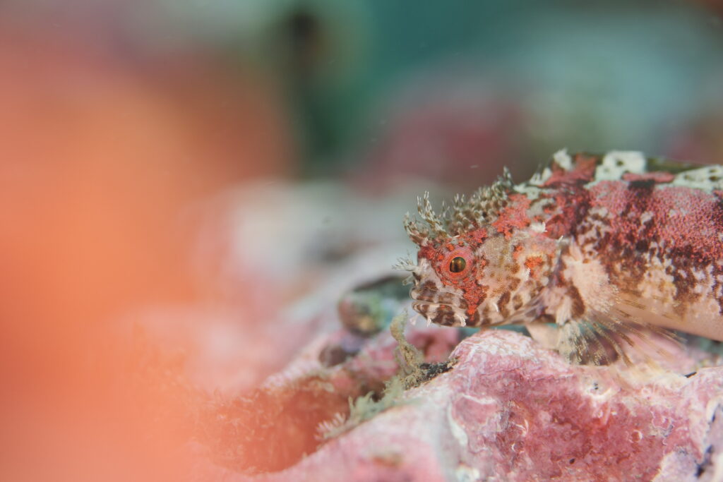 海は海藻の森やダンゴウオを楽しめる、まだあまり知られていない地のダイビングを楽しみます。