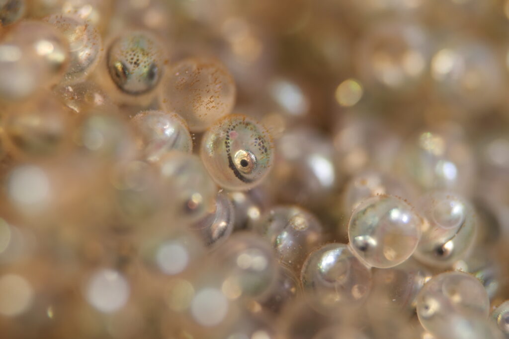 アイナメの卵は産みたてがだいぶ少なくなってきましたが、もうハッチしそうな卵がちらほら・・・