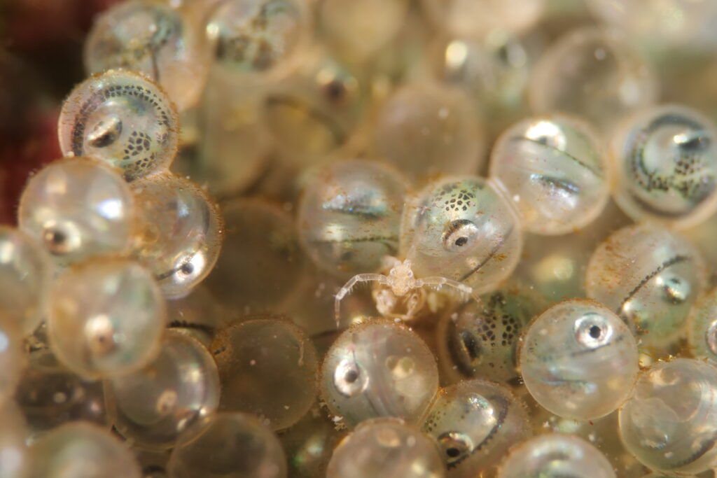 こちらはハッチ間際の卵・・・に、ワレカラが〜〜〜〜😍